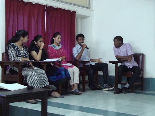 As a part of their learning activity, the first-year BSc Nursing students of MCON presented a role play on the verbal therapeutic techniques of communication. The batch of 103 students were divided into 6 groups. Each group played their parts with enthusiasm. The group headed by Mr. Tsholofelo July Baloyi, in their play, demonstrated the ‘use of open ended questions’. The group II enacted the technique of ‘reflecting and restating’. The performance of both the groups were outstanding with Ms. Reanetse Mtolo’s foremost role. The group III exhibited an overwhelming act by incorporating creativity, music and necessary articles in their skit and they emphasized on ‘focusing’. The essential vocal sound effects were given by Mr. Mojalefa Kleinbooi. The use of ‘summarizing’ was well demonstrated by the group IV led by Ms. Racheal Nikita Cuthinha. The group V was well organized and they highlighted the use of ‘offering information’ in verbal communication as a therapeutic technique. Mr. Simson D’Souza led the group VI in conveying the technique of ‘clarifying’. Ms. Roseminu Varghese, Faculty, MCON, Manipal concluded the role play by making the students understand the practical aspects of verbal therapeutic techniques and its implementation in the clinical settings.
