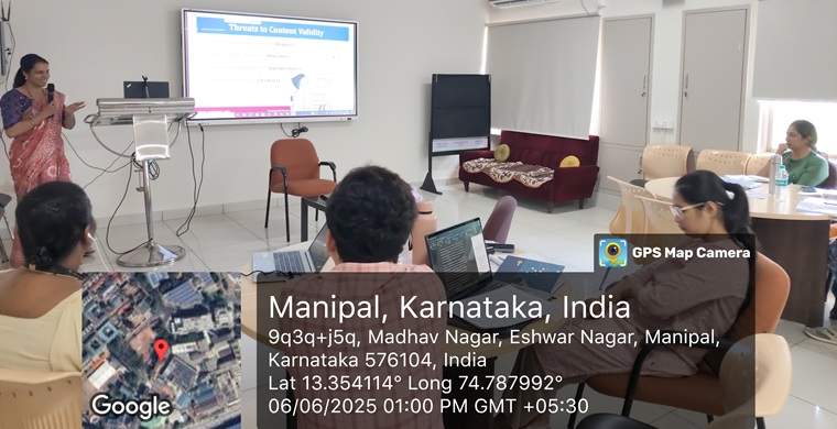 Following that, a session on “Establishing the Validity of the Tool” was led by Dr. Sonia R.B. D’Souza, Professor & Head, Department of OBG Nursing, MCON, MAHE. She discussed various types of validity and methods to ensure that a tool accurately measures what it is intended to. Dr. D’Souza also shared insights into expert validation processes and the use of statistical methods like factor analysis to support construct validity.