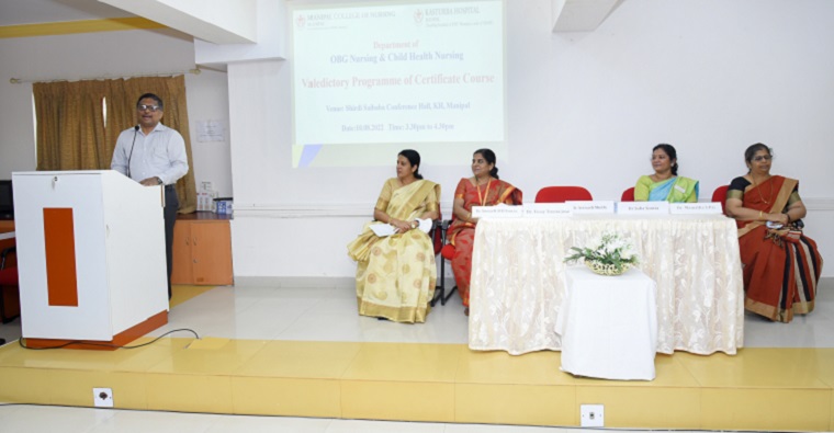 The valedictory program of the Certificate Course on Basic Obstetrical skills and Neonatal Nursing organized by the department of OBG Nursing and Child Health Nursing, Manipal College of Nursing (MCON), MAHE Manipal was held on 10th August 2022 in the Conference Hall of Shirdi Saibaba Block, Kasturba Hospital, Manipal.
