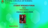 The fifth session of the webinar series was held on 15 January 2021. Ms Pushpa, II year MSc Nursing student was the moderator for the session. Ms Monalisa Saikia, PhD Scholar, Department of Fundamentals of Nursing, MCON deliberated on the topic “Literature Search for the database CINAHL”. It was a session with hands-on experience online searching in the database CINAHL through the MS Teams platform and the resource person clarified all the doubts. A total of 20 students attended the session, which included faculty members, PhD Scholars, undergraduates, postgraduates and the M. Phil Nursing students.