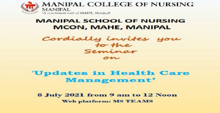 Manipal School of Nursing, MCON, MAHE, Manipal has organized a seminar on ‘Updates in health care management on 8th July from 9 am to 12 noon
