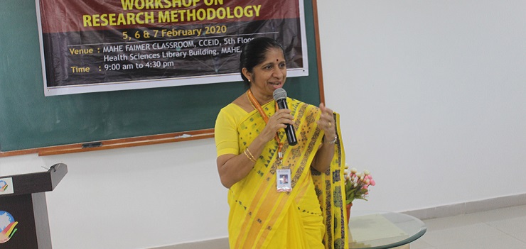 Manipal College of Nursing, MAHE, Manipal, organized a three days workshop on ‘Research Methodology’ from 5th to 7th February 2020 at CCEID, 5th floor, Health Sciences Library building, MAHE, Manipal. This workshop was organized by I Year MSc (Nursing) students in coordination with the Department of Mental Health Nursing. A total of 43 participants had registered from various disciplines like Nursing, Medicine, Pharmacology, Architecture and Allied Health Sciences.