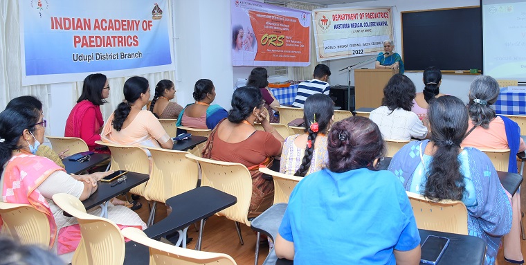 The Departments of Child Health Nursing and Community Health Nursing, Manipal College of Nursing (MCON), Manipal and the Department of Paediatrics, Kasturba Medical College (KMC), Manipal, Manipal Academy of Higher Education (MAHE) in collaboration with the Indian Academy of Pediatrics (IAP), Udupi District Branch observed ‘World Breastfeeding Week 2022’ on the theme “Breastfeeding Friendly Hospitals in India and Step up for breastfeeding - Education and Support” with various activities conducted from 1st to 7th August 2022. The programme was conducted with an aim to advocate breastfeeding friendly practices in hospitals and create awareness among health care professionals and the public to support breastfeeding.