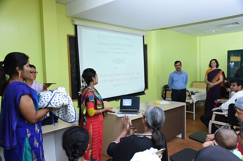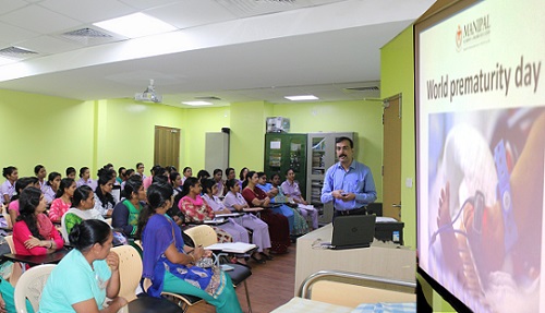 Dr Judith Noronha, Associate Dean, Dr Baby S Nayak, Head of Department of Child Health Nursing, Dr Jayashree, Dr Apurv Barche and faculty members from Manipal College of Nursing and Pediatrics department were also present. The day ended with developmental screening and follow up health check-up of premature babies. The total beneficiaries were 80 mothers of premature babies and 100 health care professionals.