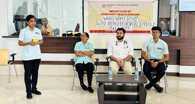 World Stroke Day was observed by the faculty of the Department of Community Health Nursing and students of final year BSc Nursing, Manipal College of Nursing, MAHE, Manipal, on October 28, 2023, from 10.00 am to 12.30 pm at Dr. TMA Pai Rotary Hospital, Karkala.