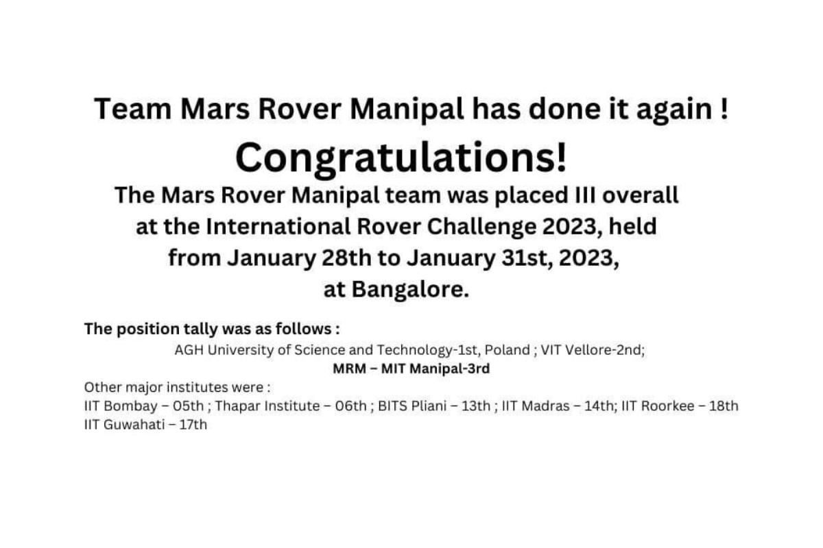 Heartiest congratulations to Mars Rover Manipal Team of MIT for the outstanding achievement.