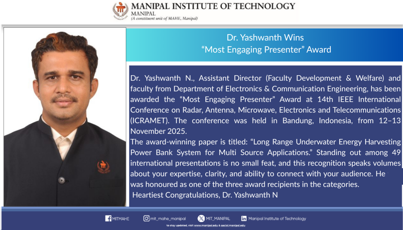This achievement adds yet another feather to MIT Manipal’s cap, underscoring the institute’s commitment to academic excellence and community engagement.