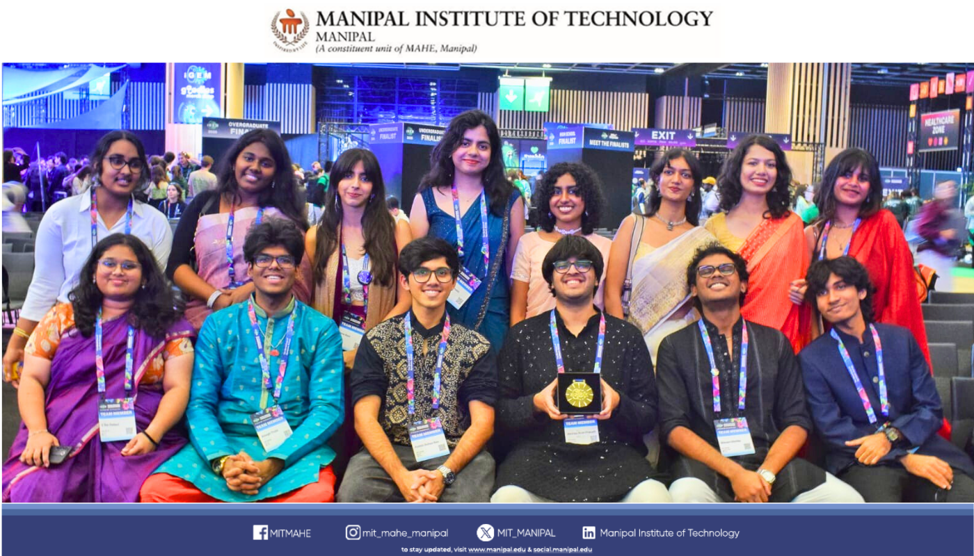 Team Manipal BioMachines from MIT–MAHE achieved remarkable success at the International Genetically Engineered Machine (iGEM) Competition 2025, held in Paris, France. The team received a Gold Medal for their innovative project, recognizing their excellence in research, innovation, and human practices.