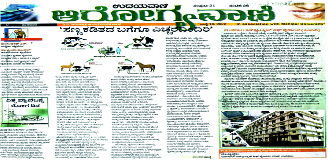 MIV Manipal, July 10, 2022: An article on “Zoonotic diseases and its awareness” written by Dr. Piya Paul Mudgal & Dr. Sudheesh N. was published in the Udayavani newspaper.