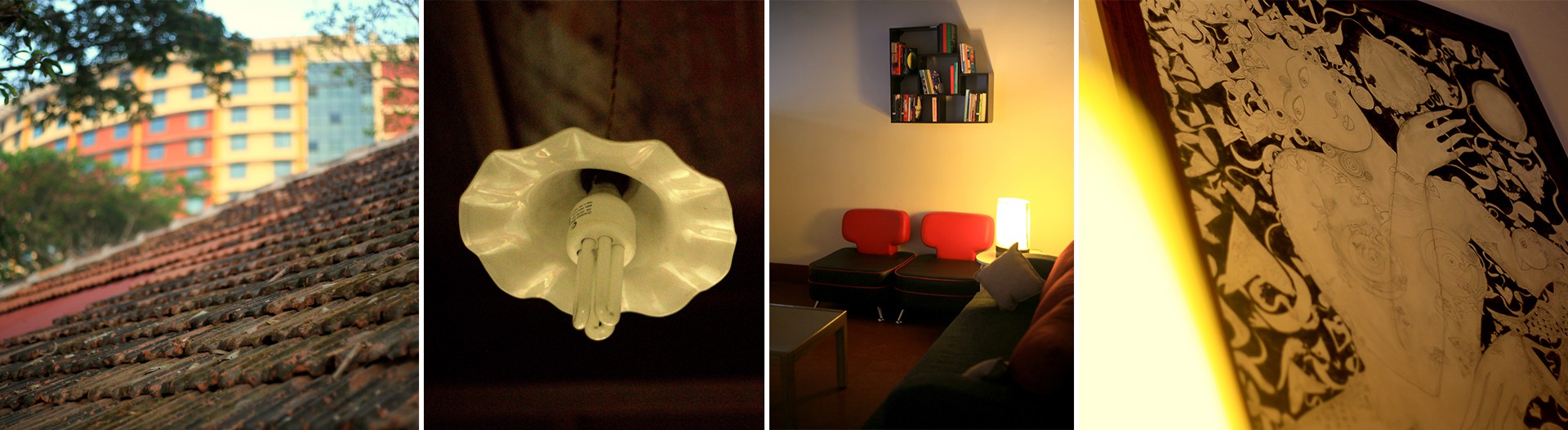 No. 125 is a charming little house with a sloping tiled roof. It has cool red-oxide flooring, aged wooden rafters for ceilings, and well-lit rooms that exude warmth. A stately Amaltas tree (laburnum) grows across the wall that encloses a little garden of flowering bushes. Inside the house are bookshelves, couches to sink into, artwork on the walls, and the hum of empathetic silence.