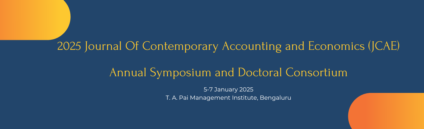 The Journal of Contemporary Accounting & Economics (JCAE) is proud to host its annual symposium and doctoral consortium at Manipal Academy of Higher Education (MAHE) Bengaluru from the 5th of January to the 7th of January 2025. Jointly organised by the JCAE and MAHE, the three-day event will comprise plenary sessions, concurrent sessions, a doctoral consortium, and speeches by eminent speakers.