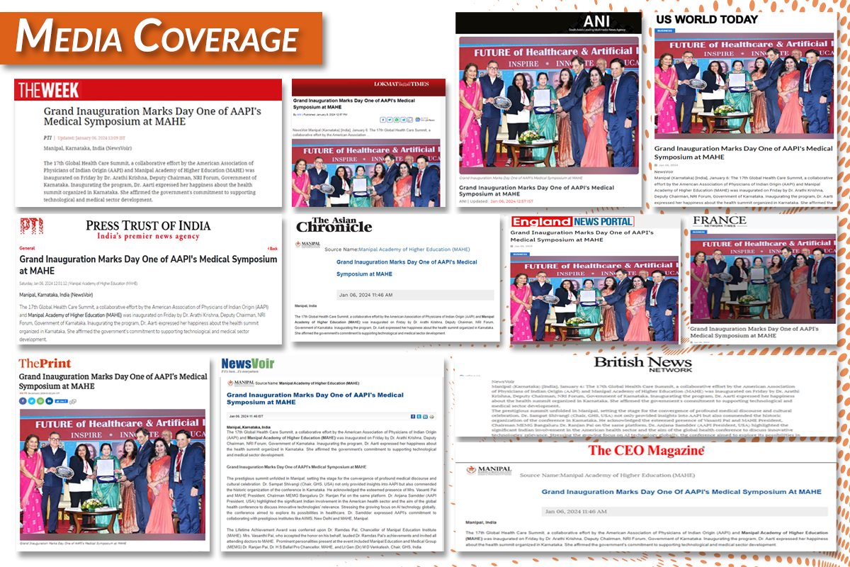 Manipal 5 January 2024: The 17th Global Health Care Summit, a collaborative effort by the American Association of Physicians of Indian Origin (AAPI) and Manipal Academy of Higher Education (MAHE) was inaugurated on Friday by Dr. Arathi Krishna, Deputy Chairman, NRI Forum, Government of Karnataka. Inaugurating the program, Dr. Aarti expressed her happiness about the health summit organised in Karnataka. She affirmed the government's commitment to supporting technological and medical sector development.
