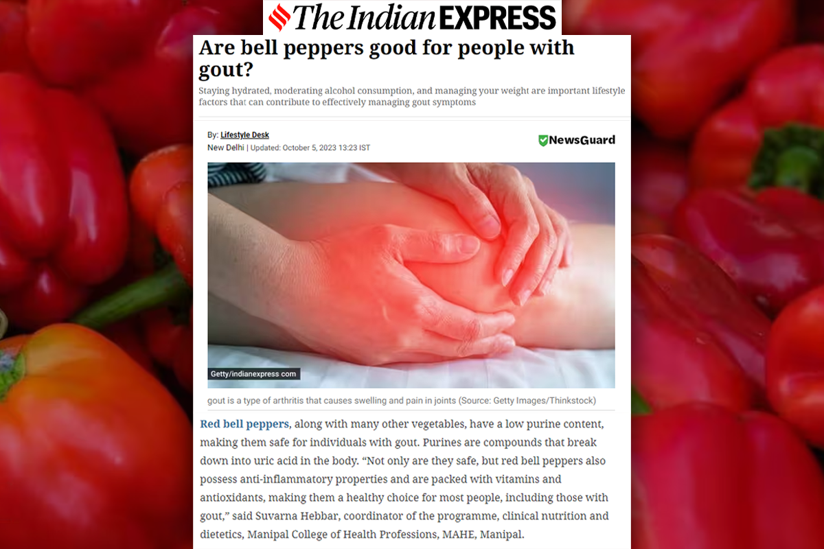 Manipal, 5th October 2023: In the article "Are bell peppers good for people with gout?", valuable insights are given by Suvarna Hebbar, coordinator, clinical nutrition and dietetics, Manipal College of Health Professions (MCHP), Manipal.