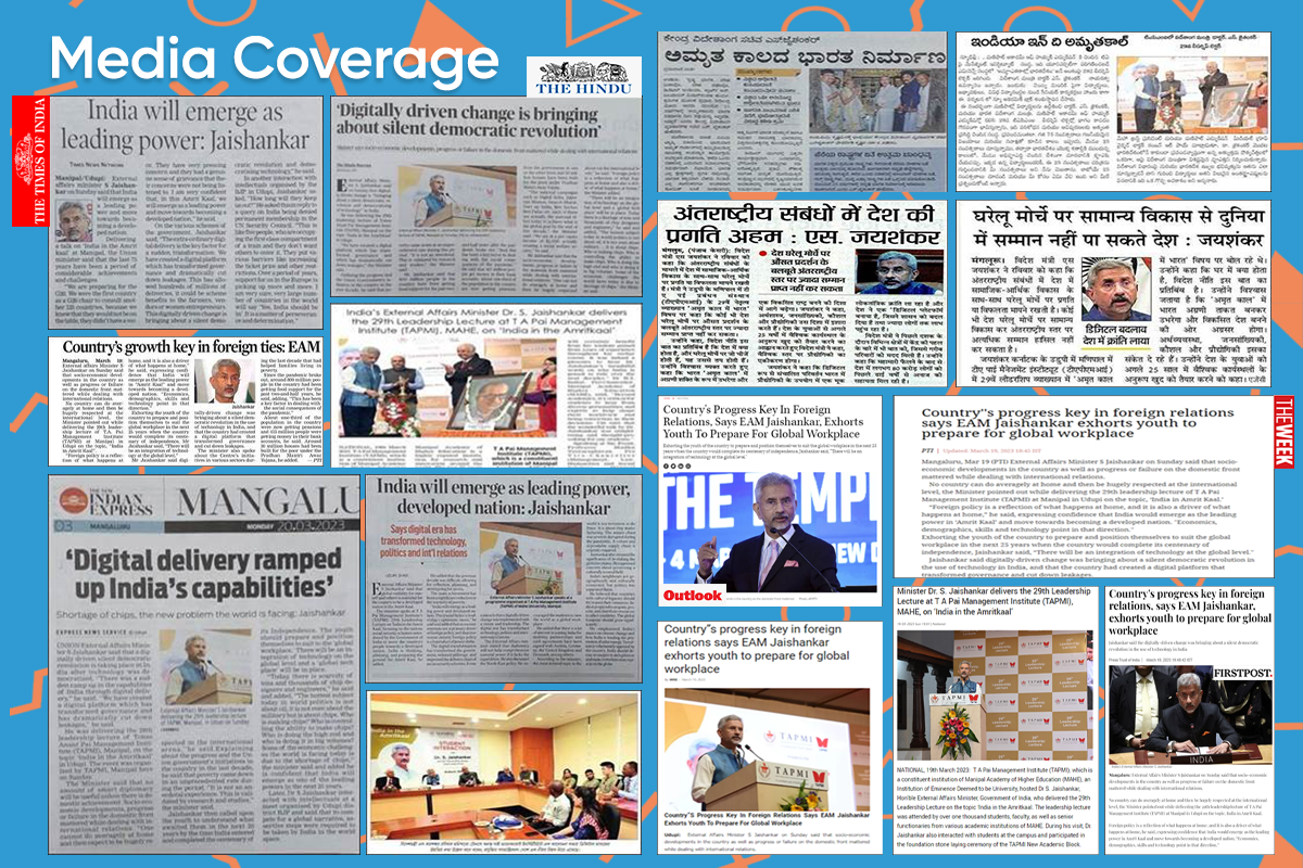 Addressing the students at Manipal, Dr. S. Jaishankar, and External Affairs Minister of India, said, “It’s an honour to be a part of the 29th TAPMI Leadership Lecture with Manipal Academy of Higher Education is a highly reputed institution for research and innovation around the world. The last 75 years have been a period of considerable achievements, and challenges. Now, we are looking at 25 years, so that during the period ahead leading up to the centenary of India, we can strive to become a developed country. To all the students here, I would say that these 25 years are your years to realize history. Look at the next 25 years and ask yourself, what awaits you.”