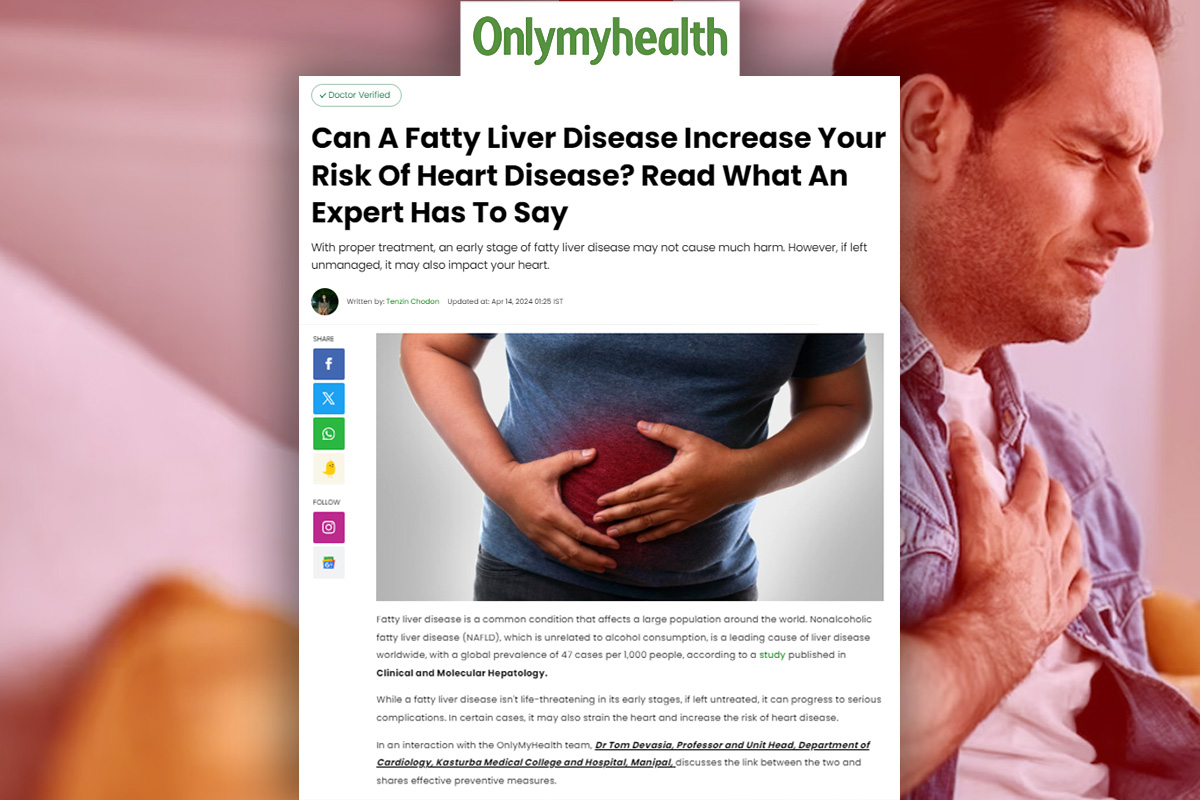 Manipal; 14 April 2024: In the article, Can A Fatty Liver Disease Increase Your Risk Of Heart Disease? Read What An Expert Has To Say, valuable insights are given by Dr Tom Devasia, Professor & Unit Head, Department of Cardiology, Kasturba Medical College (KMC), Manipal.
