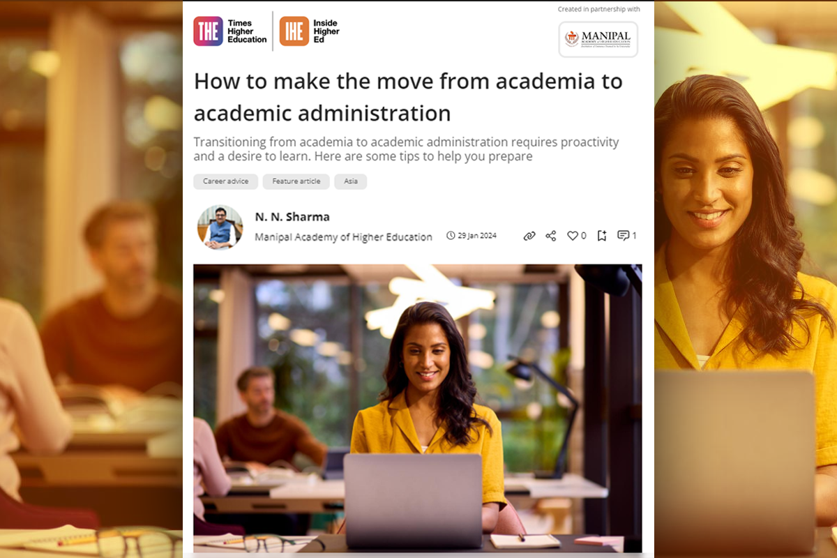 Exclusive article, How to make the move from academia to academic administration, by Dr N.N. Sharma, Pro Vice Chancellor, Strategy and Planning, Manipal Academy of Higher Education MAHE, Manipal.