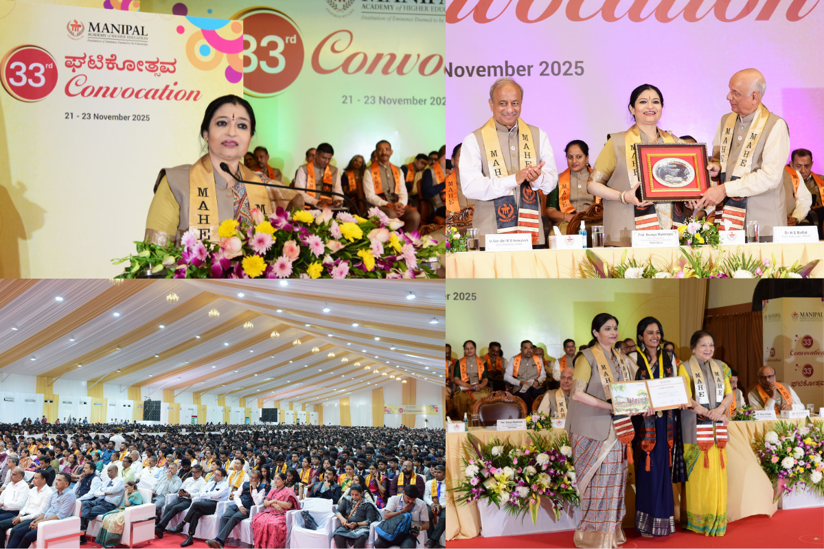 Manipal, 21st November 2025: Manipal Academy of Higher Education (MAHE), Institution of Eminence Deemed to be University, celebrated its 33rd Convocation at Manipal on Friday, with the ceremony that witnessed MAHE’s commitment to nurturing skilled graduates, fostering innovation, and promoting excellence across disciplines. On Day One, 1,648 students received their degrees, including 64 PhD awardees, while four exceptional students were honored with the prestigious Dr. TMA Pai Gold Medal.