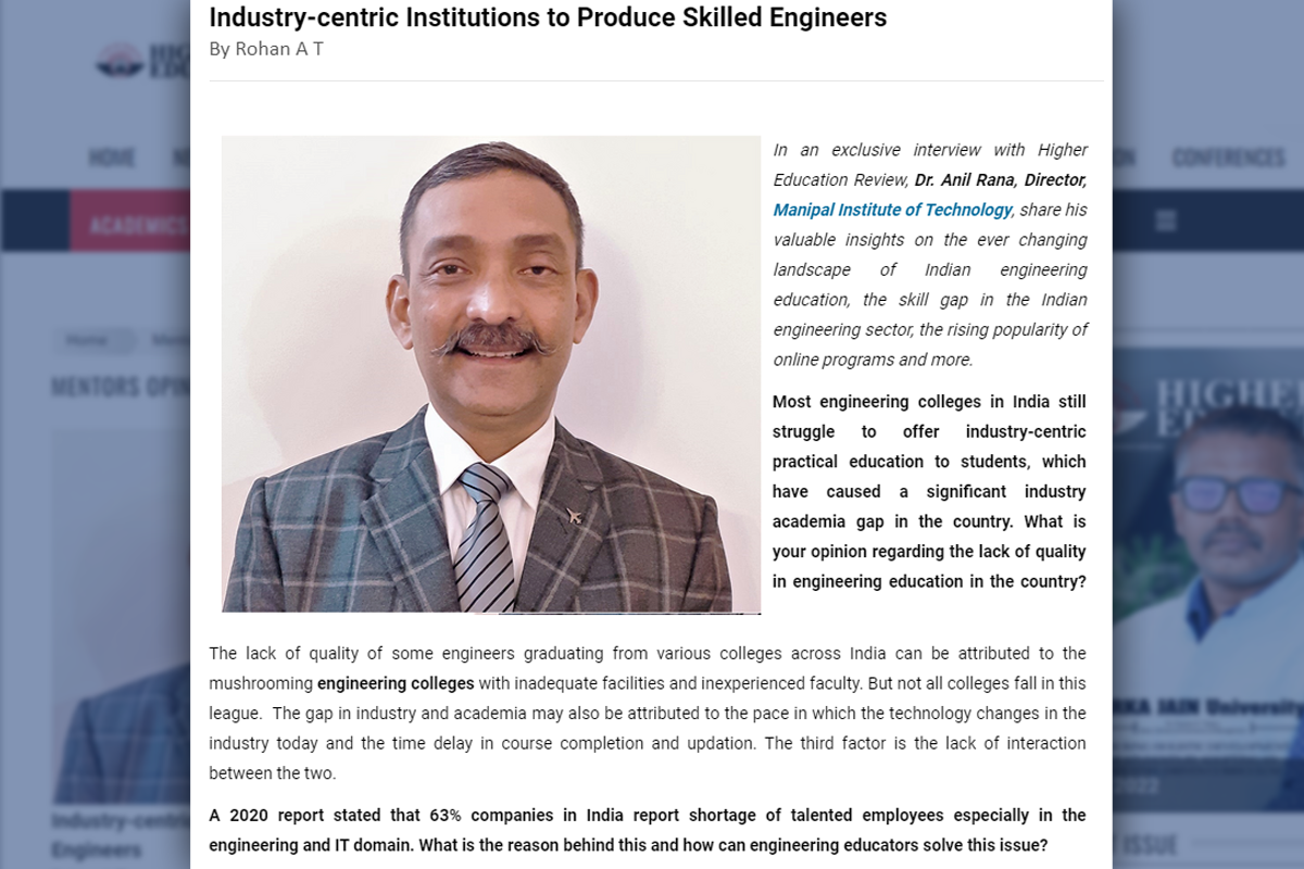 Manipal, 08th August 2022: Cdr (Dr) Anil Rana, Director, Manipal Institute of Technology (MIT), Manipal, shared his valuable insights on the ever-changing landscape of Indian engineering education, the skill gap in the Indian engineering sector, and the rising popularity of online programs, and more.