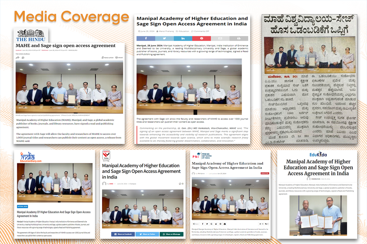 The agreement with Sage will allow the faculty and researchers of MAHE to access over 1000 journal titles, and researchers can publish their content as open access.