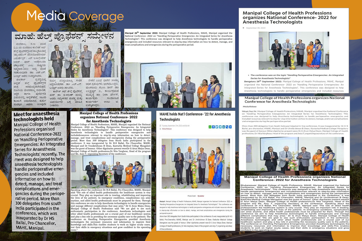 Manipal 26th September 2022: Manipal College of Health Professions, MAHE, Manipal organized the National Conference- 2022 on “Handling Perioperative Emergencies: An Integrated Series for Anesthesia Technologists”. This conference was designed to help Anesthesia technologists to handle perioperative emergencies and included resources relevant to step-by-step information on how to detect, manage, and treat complications and emergencies during the perioperative period.