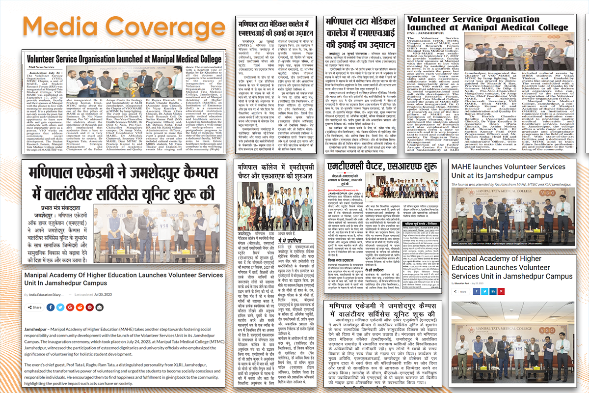 Speaking about the launch, Dr. G Pradeep Kumar, Dean of MTMC, expressed, "We are delighted to inaugurate the Volunteer Services Unit in our Jamshedpur Campus. MAHE has always been committed to nurturing well-rounded individuals who not only excel academically but also demonstrate empathy and concern for the society they live in. The VSO-MAHE will serve as a bridge between the campus and the community, fostering a sense of responsibility and solidarity among our students." With the establishment of the Volunteer Services Unit at the Jamshedpur Campus, MAHE reiterates its dedication to cultivating socially responsible leaders who will contribute positively to the world around them.