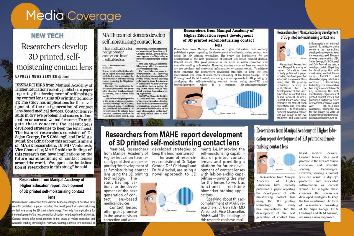 Speaking about this accomplishment of MAHE researchers, Lt Gen (Dr) MD Venkatesh, Vice Chancellor, MAHE said “The findings of this research can have implications on the future manufacturing of contact lenses around the world. We admire the dedication of the team of researchers in this study and congratulate them on their success”