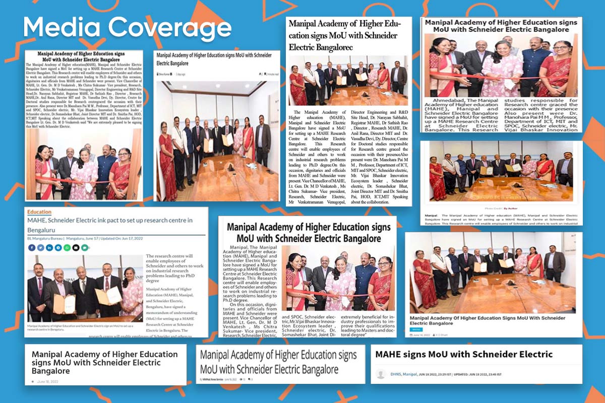 Speaking about the collaboration between MAHE and Schneider Electric Bengaluru Lt. Gen. Dr. M. D. Venkatesh said “We are extremely pleased to be signing this MoU with Schneider Electric. The commitment of Schneider to enhance industrial research through this collaboration is commendable. An integrated learning program like this is extremely beneficial for industry professionals to improve their qualifications leading to masters and doctoral degrees”