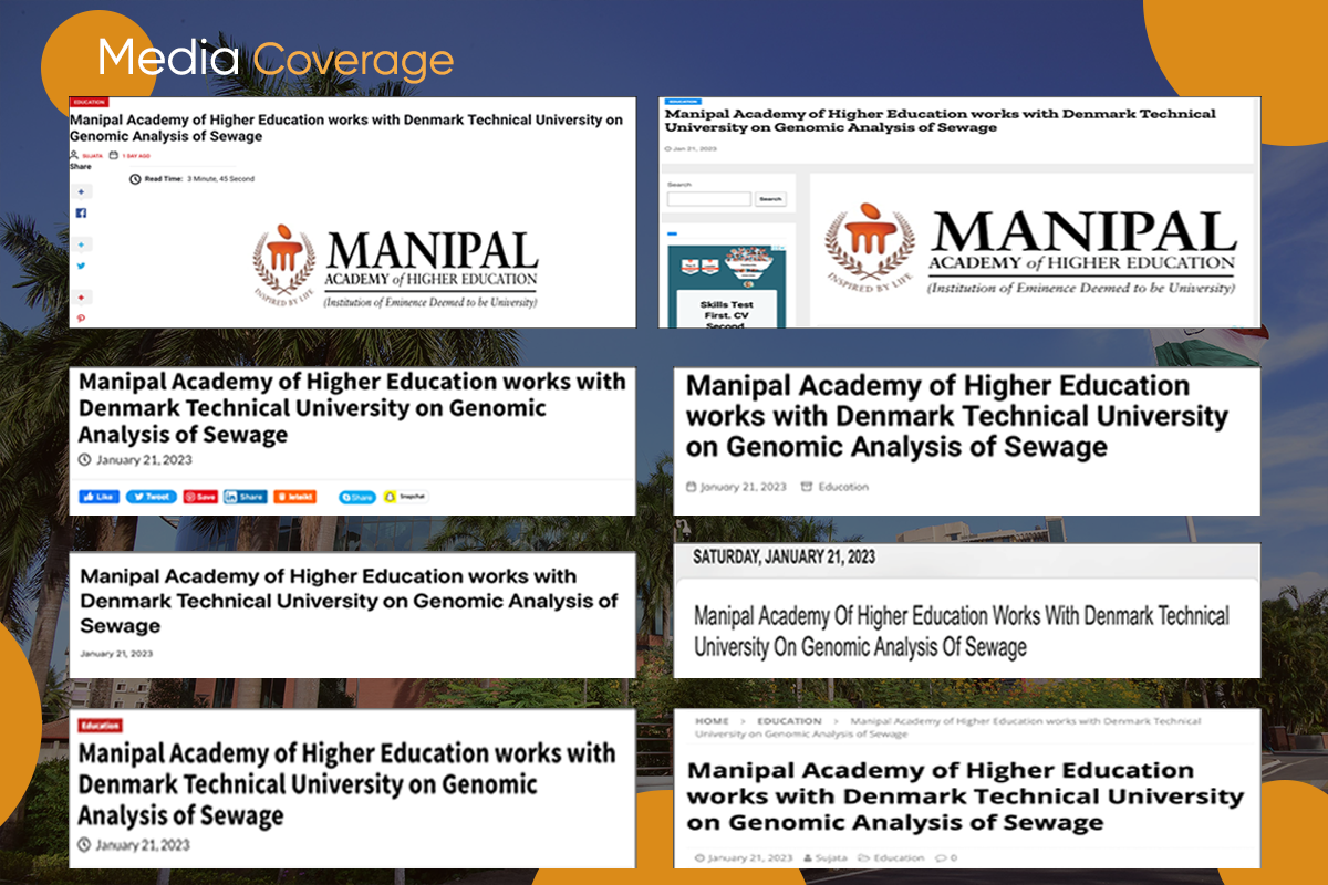 Dr. Mamatha Ballal, Prof of Microbiology, KMC, MAHE, Manipal said, “We are thrilled to have made it this far and I feel elated and honoured to be a part of this prestigious project with my students we have worked hard to achieve this feat. It was a nice experience to work with a fabulous team for Genomic Analysis of Sewage. Once again, we managed to keep MAHE’s flag flying high. I must say the collaboration with Denmark university undoubtedly resulted in fruitful outcome.