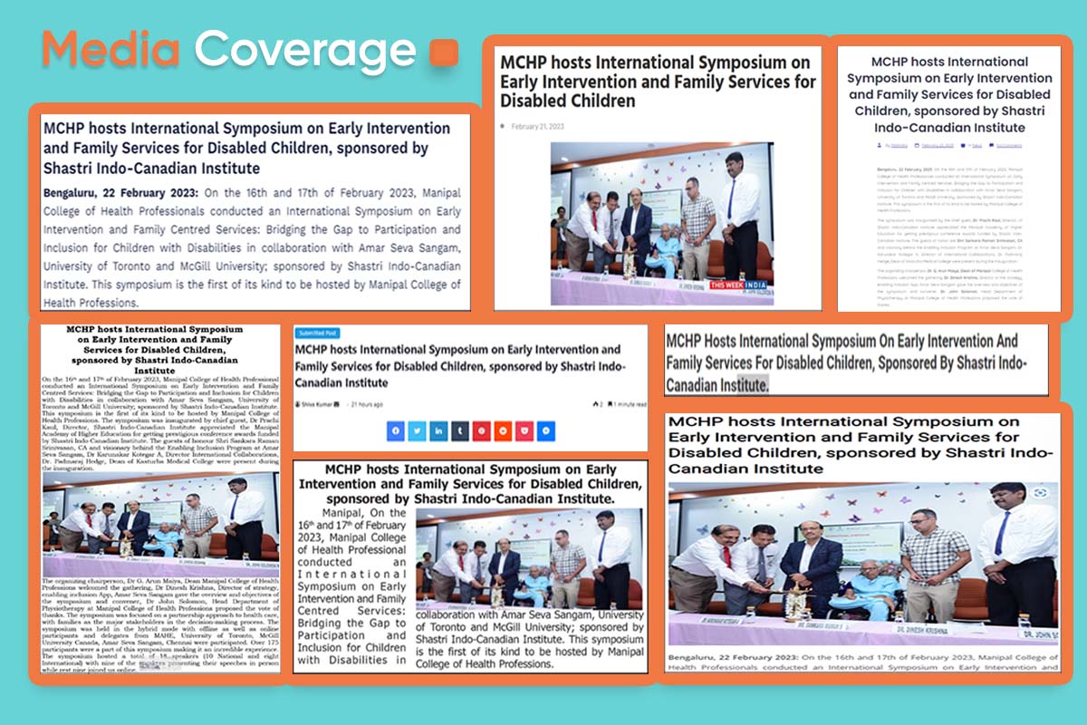 Manipal, 21st February 2023: On the 16th and 17th of February 2023, Manipal College of Health Professional conducted an International Symposium on Early Intervention and Family Centred Services: Bridging the Gap to Participation and Inclusion for Children with Disabilities in collaboration with Amar Seva Sangam, University of Toronto, and McGill University; sponsored by Shastri Indo-Canadian Institute. This symposium is the first of its kind to be hosted by Manipal College of Health Professions.