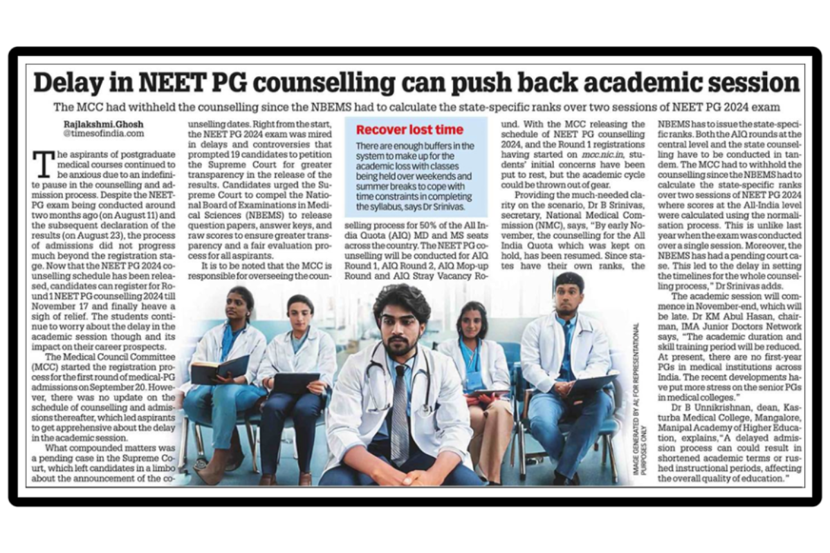 Dr B. Unnikrishnan shared his thoughts on potential setbacks in the academic calendar due to delays in the NEET PG 2024 counselling process. He underscores the importance of timely resolution, emphasising the consequences of prolonged delays in medical education and training continuity.