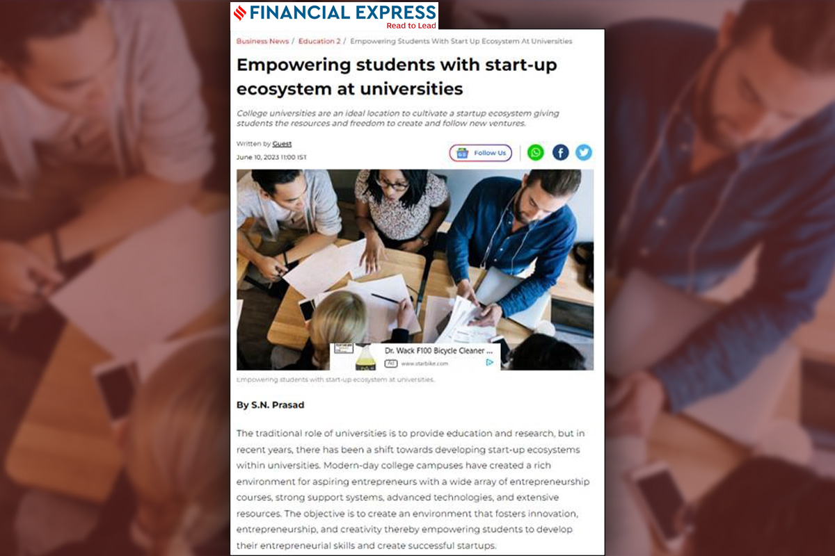 : The author’s article, “Empowering Students with start-up ecosystem at Universities”, by Dr S.N. Prasad, Department of Science and Humanities at Manipal Institute of Technology (MIT), Bengaluru.
