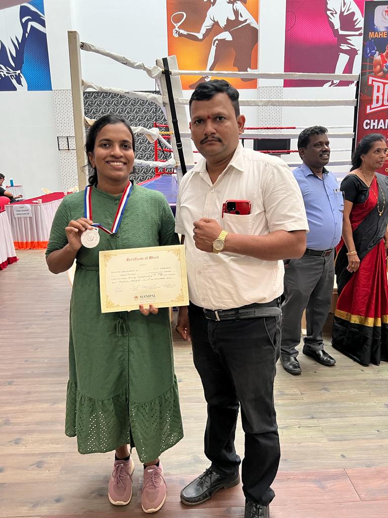 Dr Sreelekshmi S (Student, First Year, Master of Public Health, Prasanna School of Public Health, Manipal Academy of Higher Education, Manipal) won the Second Prize (Silver Medal, Certificate) in the Women’s Welter Weight Category.