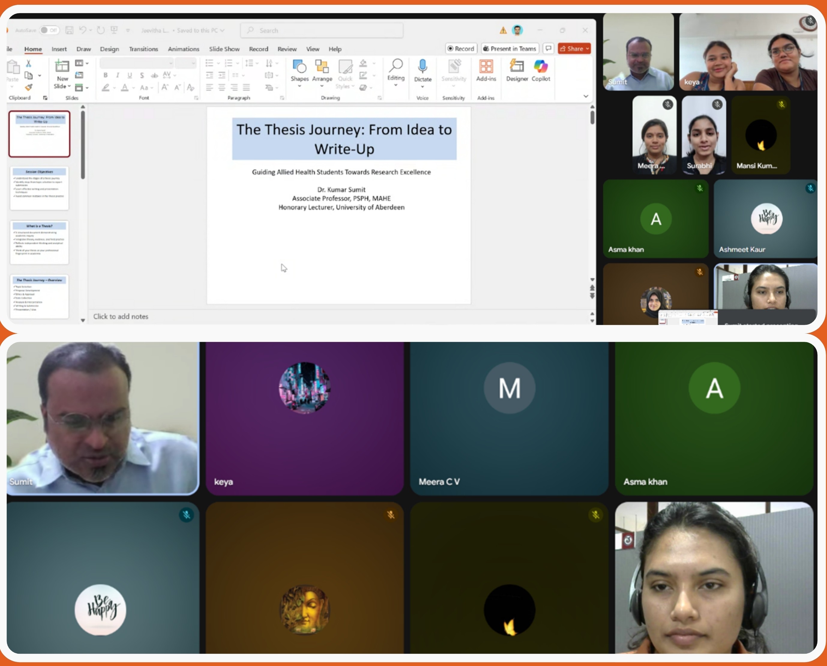 Dr Kumar Sumit (Faculty, Department of Global Public Health Policy and Governance [GPHPG], Prasanna School of Public Health [PSPH], Manipal) was invited as a resource person to deliver a Guest Lecture on “From Research Topic to Research and Dissertation: Step-by-Step Guidance” on October 29, 2025 at Alliance University, Bengaluru. The event was organised by the Department of Psychology, Alliance School of Liberal Arts, Alliance University, Bengaluru.