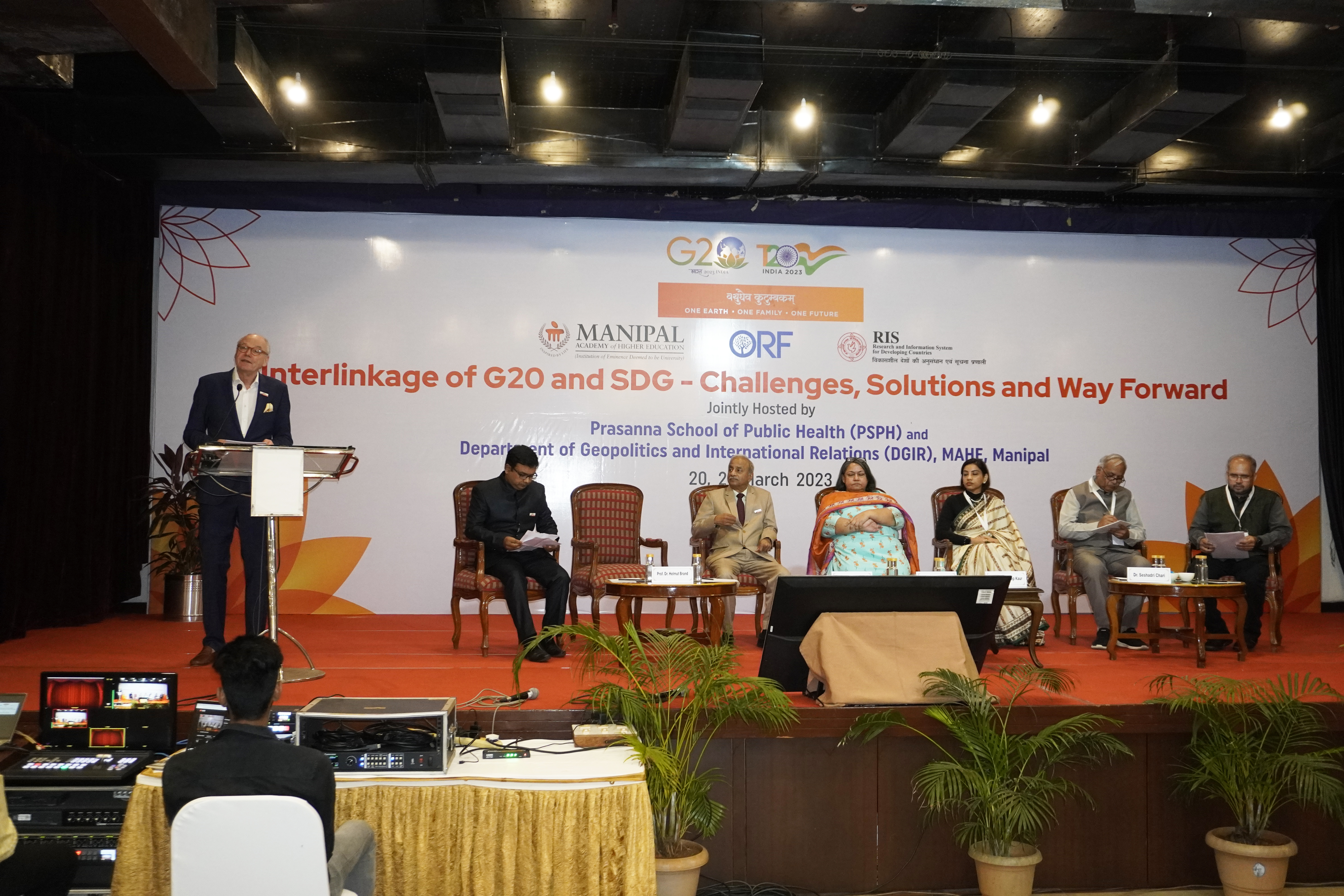 Prasanna School of Public Health (PSPH), and Department of Geopolitics and International Relations (DGIR), organized a T20 Side Event - ‘Interlinkage of G20 and SDGs: Challenges, Solutions, and Way forward’ in collaboration with T20 Secretariat, Observer Research Foundation (ORF) and Research Information System (RIS) on March 20-21, 2023 at Fortune Inn Valley View, Manipal.