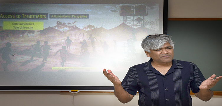 Prof. Dr. Unni Karunakara (Shinhan Distinguished Visiting Professor Yonsei University & Assistant Clinical Professor and Researcher Yale School of Public Health) during a Short Talk on Focus on Research in India organized by PSPH Research Cell on November 26, 2019.