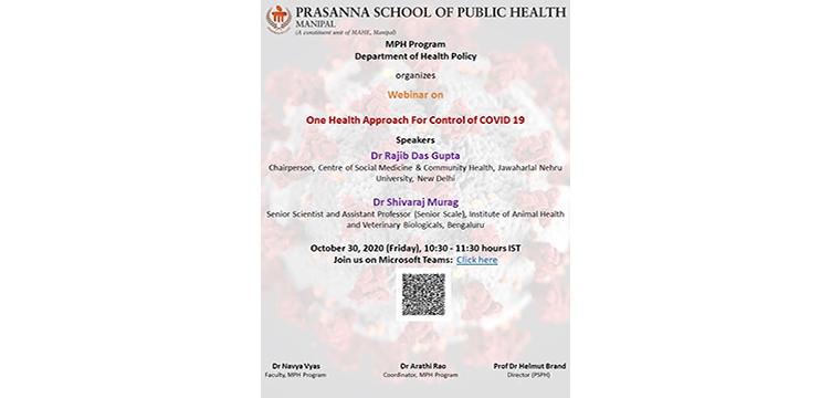 As part of Global One Health Day observance, the Department of Health Policy organized a webinar on ‘One Health Approach for Control of COVID-19’ on October 30, 2020.