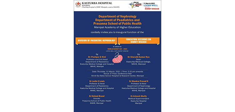 PSPH together with the Department of Nephrology and the Department of Pediatrics of Kasturba Medical College and Hospital, Manipal organized Education Sessions on ‘Living Well with Kidney Disease’ as part of World Kidney Day observance on March 11, 2021.