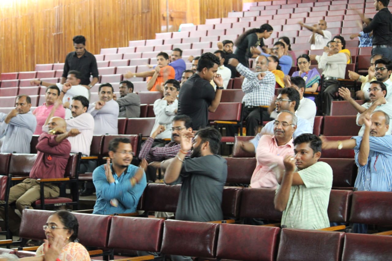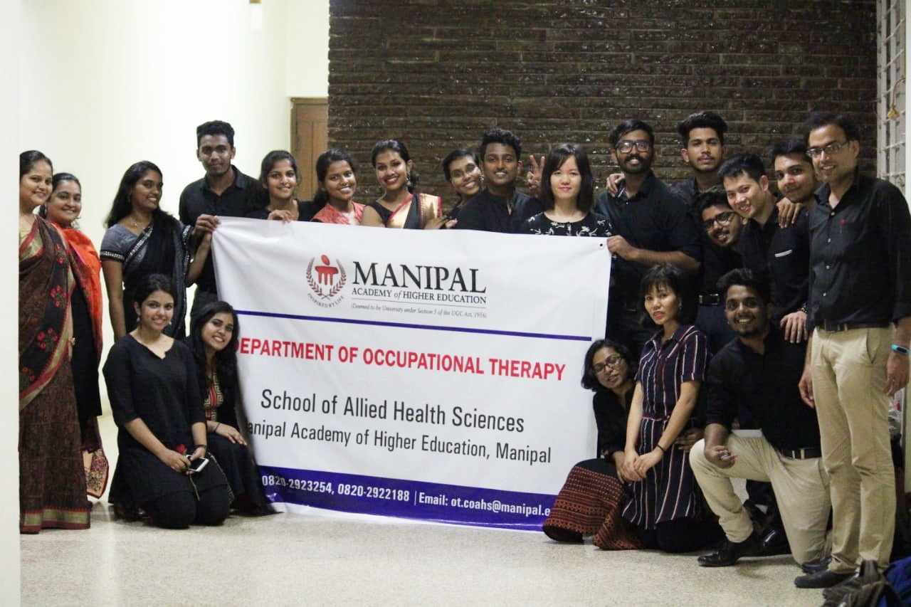 To mark the occasion of ' World Occupational Therapy Day' 2018, the Department of Occupational Therapy, SOAHS, Manipal conducted an awareness program with the title “Heathy Employee, Healthy Work” on 25th October 2018 for the employees of Syndicate Bank Manipal. The aim of the program was to sensitize the bank employees about various work related health problems and preventive measures which may be adopted by them. Approximately 150 to 200 employees from headquarters and zonal office of Syndicate Bank Manipal participated. The program was conducted at Syndicate Bank Golden Jubilee Hall, Manipal.