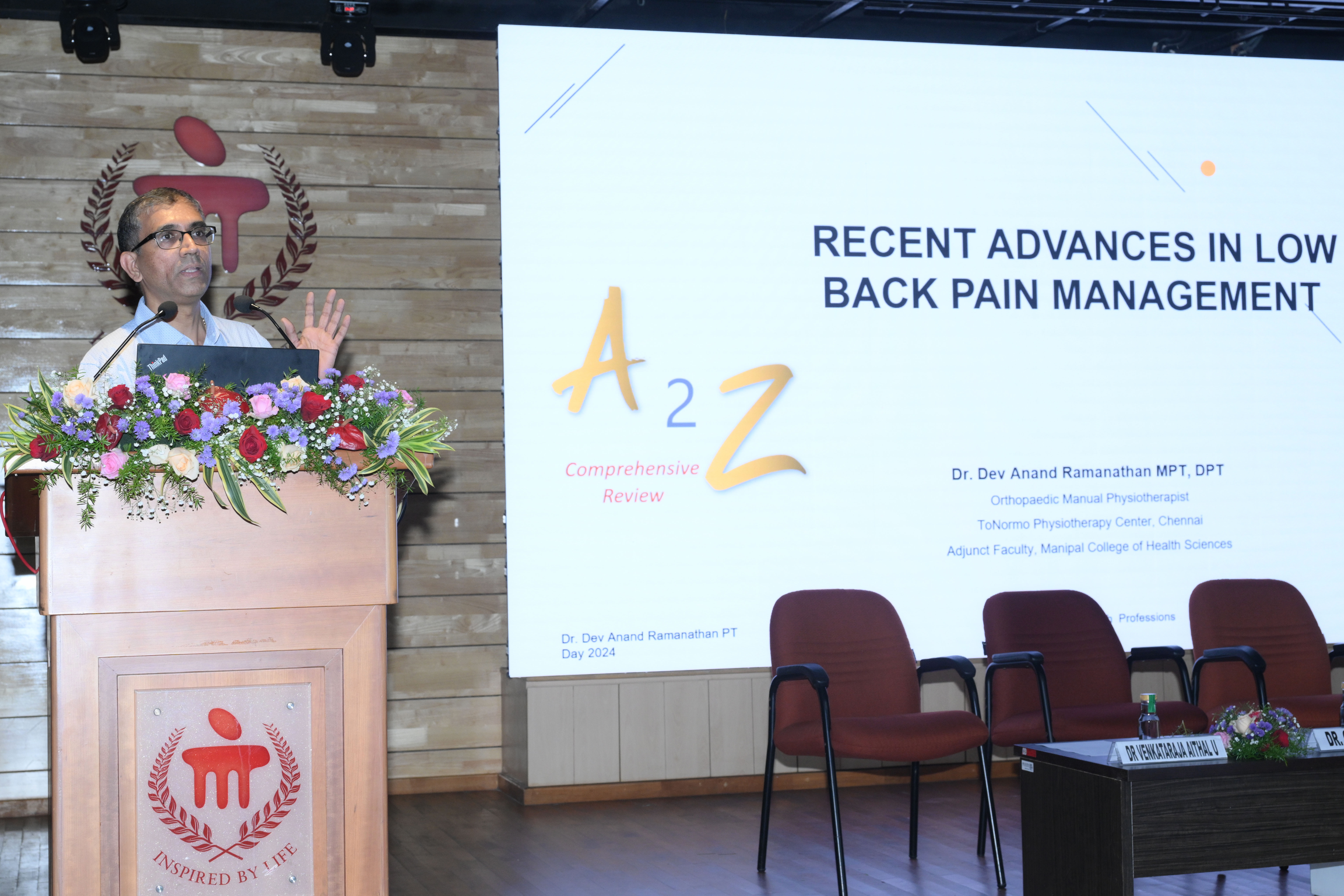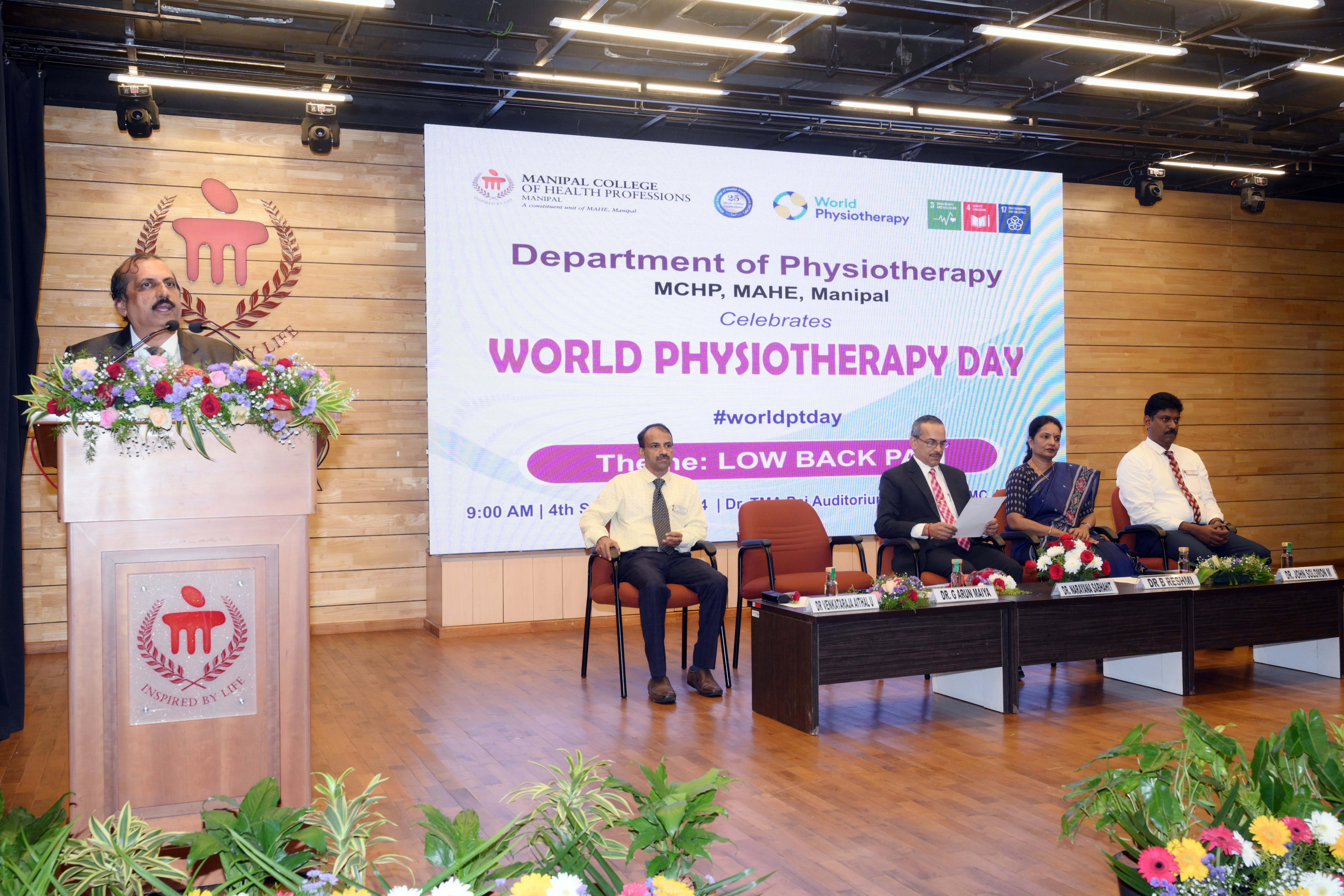 Department of Physiotherapy celebrated the "World Physiotherapy Day" on the 4th of September 2024. The theme for this year was "Low Back Pain". The function was inaugurated by Dr. Narayana Sabhahit, Pro Vice Chancellor - Technology and Science, Manipal Academy of Higher Education as the Chief Guest. Dr. G. Arun Maiya, Dean, MCHP addressed the gathering emphasising the worldwide importance and role of Physiotherapy in society and healthcare. The other dignitaries included Dr. Reshmi B and Dr. Venkatraj Aithal U Associate Deans, MCHP and Dr John Solomon M, Head of the Department, Department of Physiotherapy, MCHP Manipal.