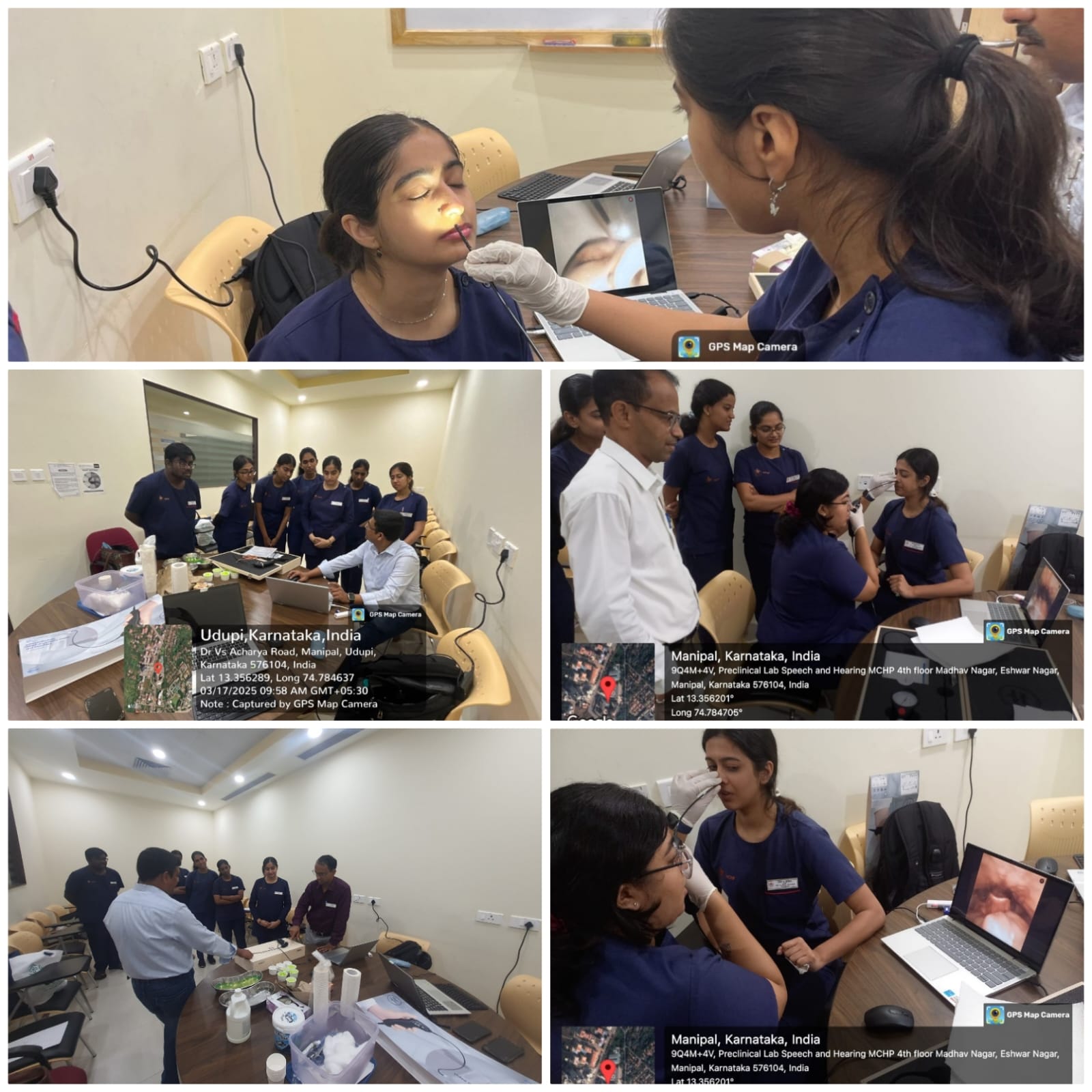 The Department of Speech and Hearing, MCHP, organized a hands-on training session on Flexible Endoscopic Evaluation of Swallowing (FEES) for Speech and Hearing interns on March 17 and 18, 2025. This Industry-Academia Collaboration Program was conducted in association with Atoms Medizin Technik, with Mr. Sean Menezes, Manager of Application-Technical Support, representing the industry.The training was facilitated by Dr. Venkataraja Aithal U, with Dr. Janet Jaison Varghese as the Program Coordinator. A total of 18 interns participated in the program, gaining practical experience in performing FEES procedure. The training received positive feedback from the students, highlighting its effectiveness in enhancing their clinical skills.