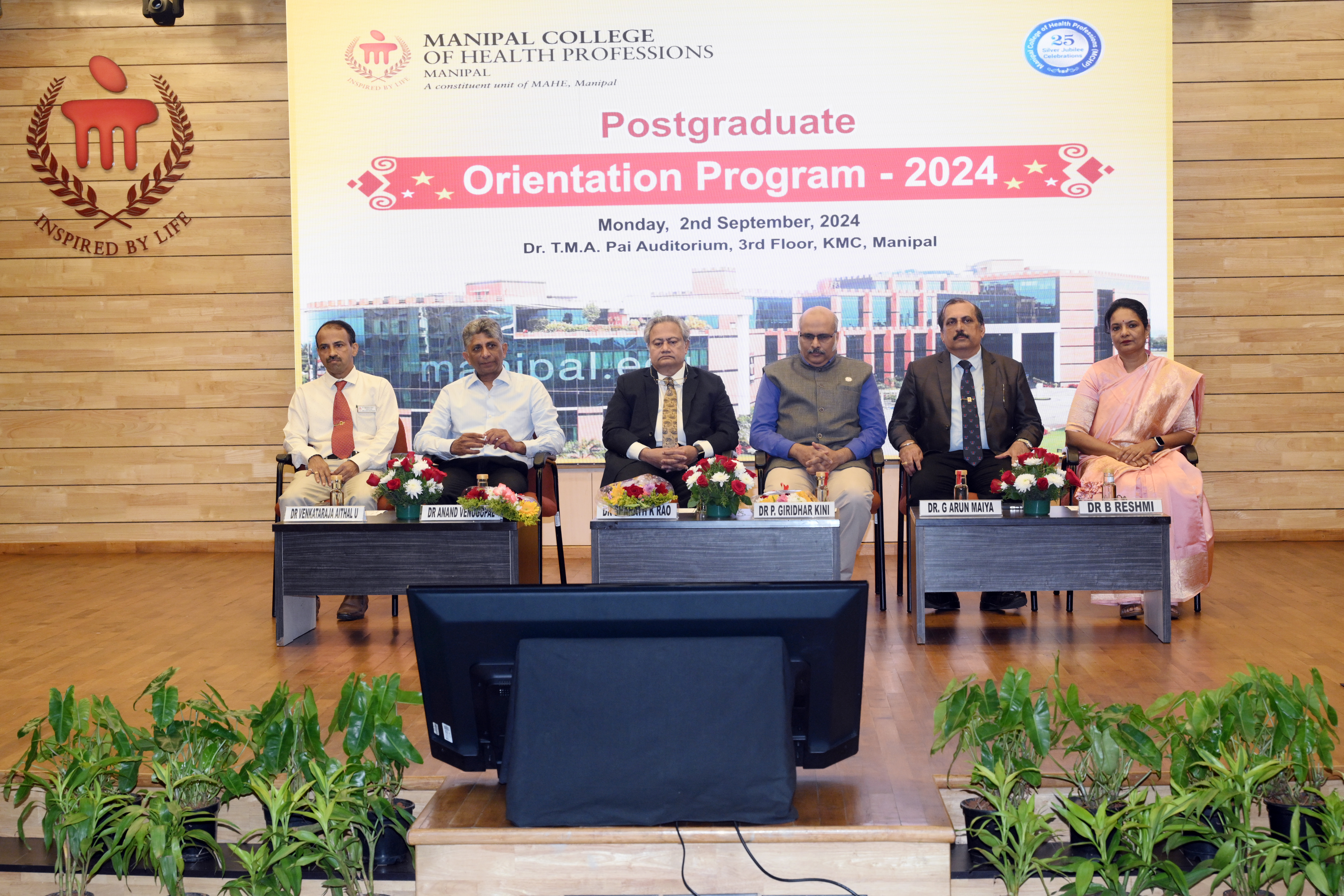 Manipal College of Health Professions (MCHP) hosted orientation program 2024 to welcome its new batch of postgraduate students on 2nd September 2024 at Dr. TMA Pai Auditorium, KMC, Manipal.
