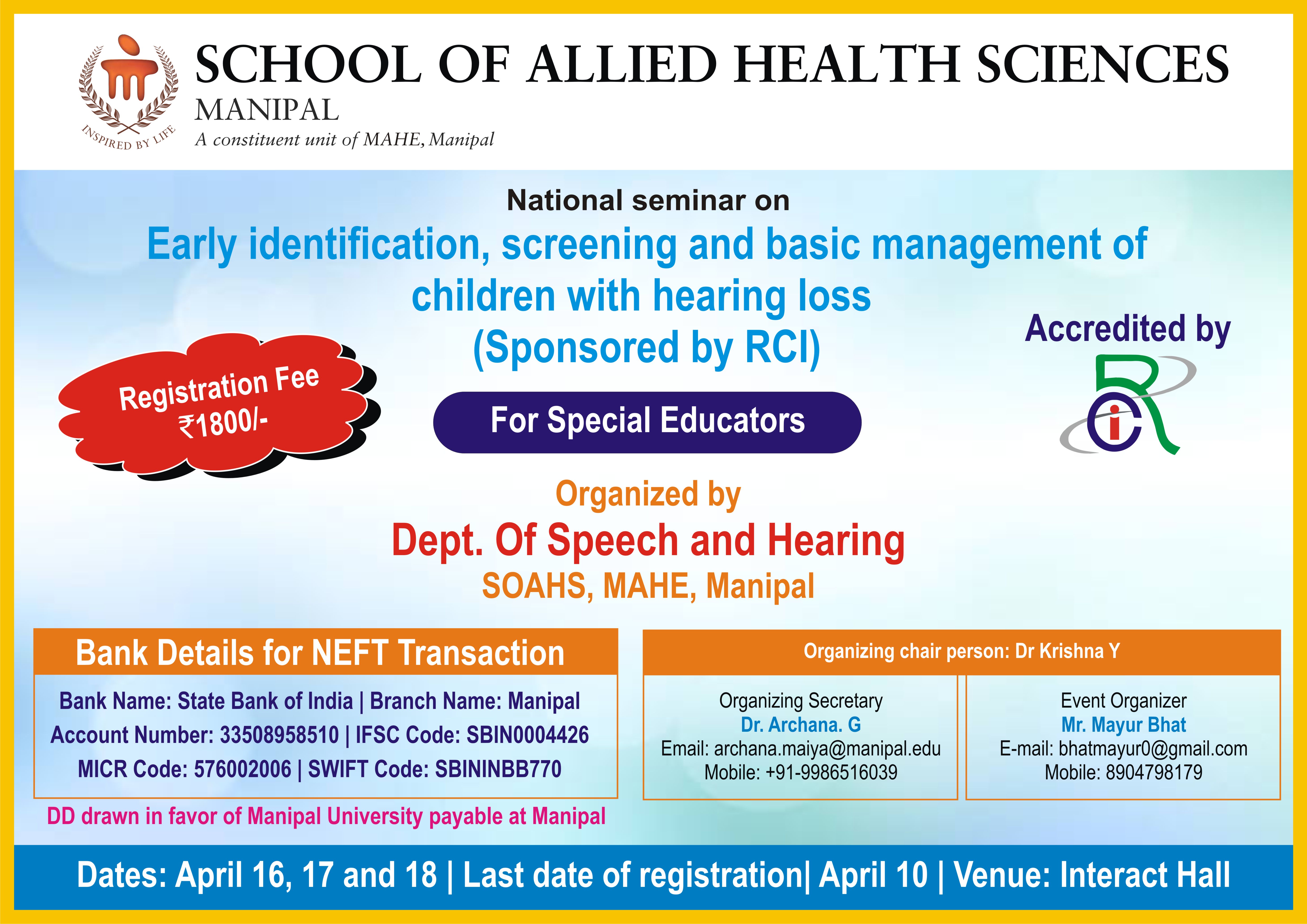 National Seminar on Early identification, screening and Basic Management of Children with hearing loss.