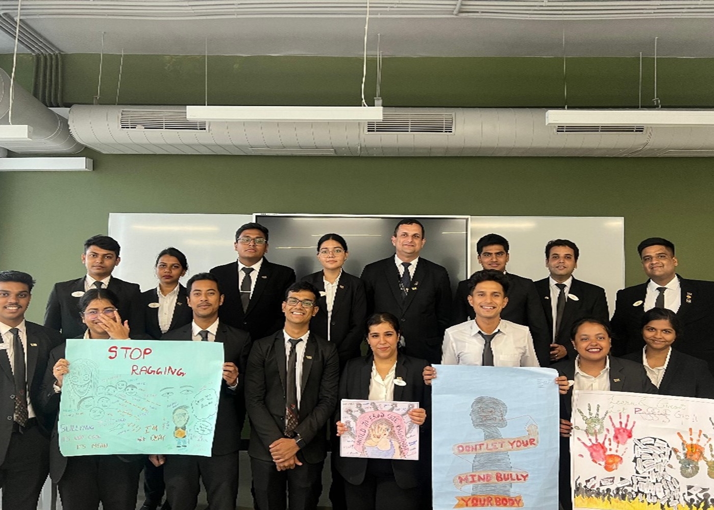 August 16, 2024: In light of the Anti-Ragging Week, a Poster and Slogan Competition was conducted on August 16, 2024, for the students of the Masters of Hotel Management program. The event was organized to raise awareness about the serious ragging issue and promote a safe and inclusive environment within educational institutions. The theme for the competition was "Together Against Ragging."
