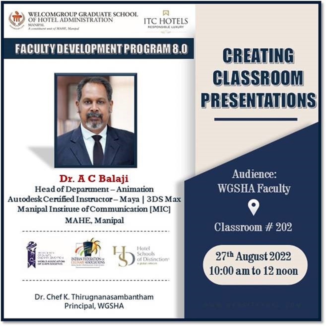 The FDP program on Presentation Skills is organized for faculty members of WGSHA.