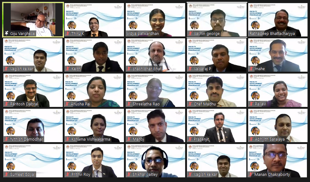 The event begun with an opening address by Chef K. Thirugnanasambantham, Principal, WGSHA. He shared his view points on organizing the FDP programs followed by introducing Mr. Varghese to the audience. The program was anchored by Dr Vidya Patwardhan, Professor, CHTR, WGSHA. The program was concluded with vote of thanks by the anchor. 52 faculty members of WGSHA attended the program and the program was also live telecasted in YouTube.
