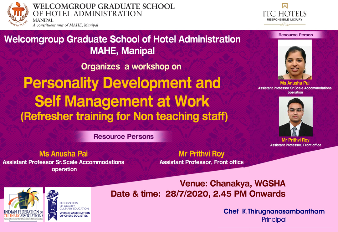 • Personality development and Self-Management at Work: A workshop at WGSHA for staff