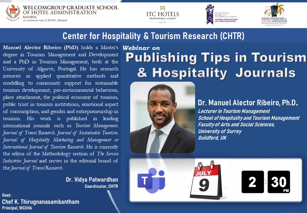 • Publishing Tips in Tourism & Hospitality Journals: Webinar with Dr. Manuel Alector Ribeiro